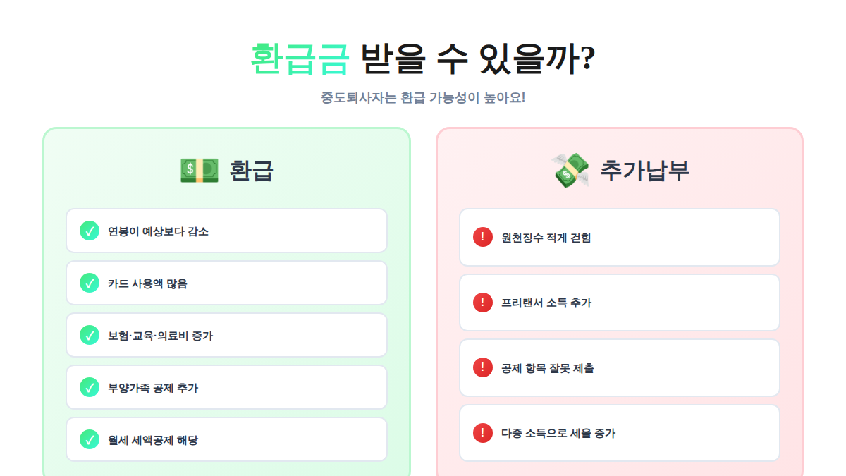 많은 분들이 궁금해하시는 부분이죠. 중도퇴사자는 사실 환급 가능성이 더 높습니다.